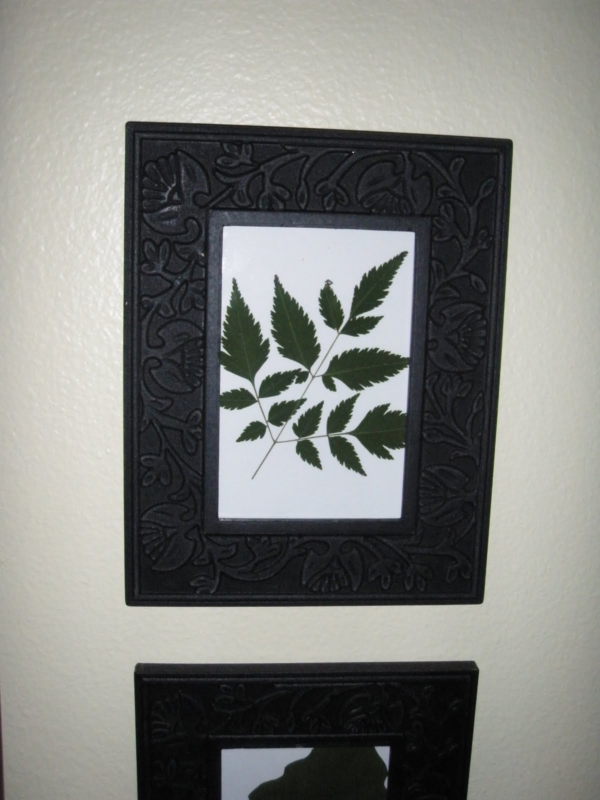I'd already cut some neutral matte board to use for backing, so when the leaves were ready, I simply placed them in the frame with the backing and hung them on the wall. Here is the finished product.